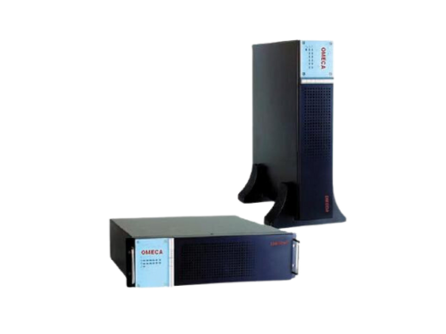 - On Line Doble Conversión: (MODELOS ICA, SL, NS-9110, OM-9130-31-32-34-36-38-40 y OMRACK DE OMECA): La carga siempre está a través del inversor que constantemente está creando una red nueva, estabilizada y filtrada en tensión y frecuencia, aislando inclusive ruidos eléctricos. Proporciona a los equipos conectados a ellos la mayor garantía en protección (99,99%). Pueden alimentarse inclusive desde un grupo electrógeno.